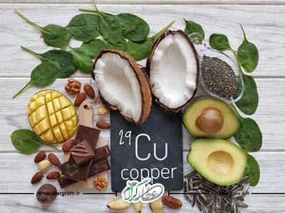 منابع غذایی این مواد معدنی (مس) عبارتند از: گوشت قرمز (دل، جگر، قلوه)، تخم مرغ، حبوبات و تخم آفتابگردان حاوی مقدار زیادی مس است که زیاده روی در مصرف آنها منجر به ازدیاد مس دربدن میشود. میوهها و سبزیجات مس کمتری دارند.
